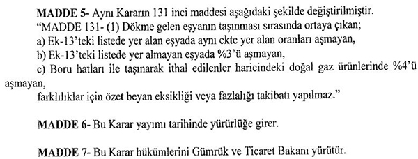 Gümrük Kanununun Bazı Maddelerinin Uygulanması Hakkında Kararda